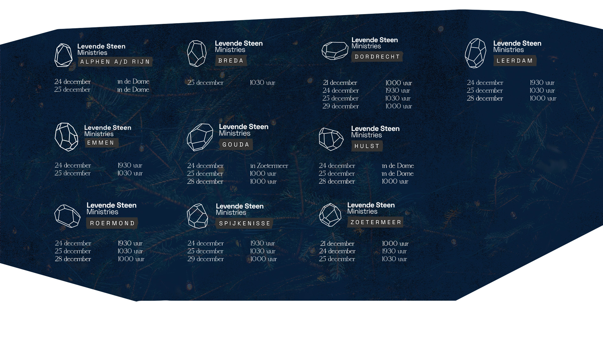 De kerstboodschap voert de boventoon, de kinderkerk brengt het kerstverhaal tot leven voor onze PowerKids en de worshipteams staan klaar om kerst vol vreugde in te luiden. We nodigen je uit om dit feest met ons te beleven en opgebouwd te worden. Zet het in je agenda en laat het aftellen maar beginnen!
